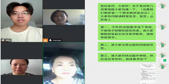各教研室老师主要就选修课考试时间安排、选修课考试方式、必修课结课及考试时间安排、试卷出题要求、试卷保密工作、监考纪律、期末综合成绩的评定以及成绩提交时间等方面对校方教务处的会议精神进行转达,并呼吁教研室各同仁务必认真对待此次期末考试,力争完满完成期末考试任务。