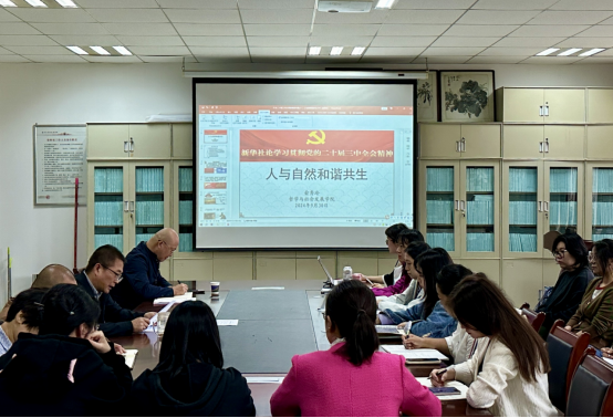 随后,宣讲人俞秀玲副教授将党的二十届三中全会精神紧密结合公司的学科特点,从人与自然和谐共生的角度,结合中华优秀传统文化,进行了宣讲,使全体参会人员对党的二十届三中全会精神有了更深刻的理解和认识。