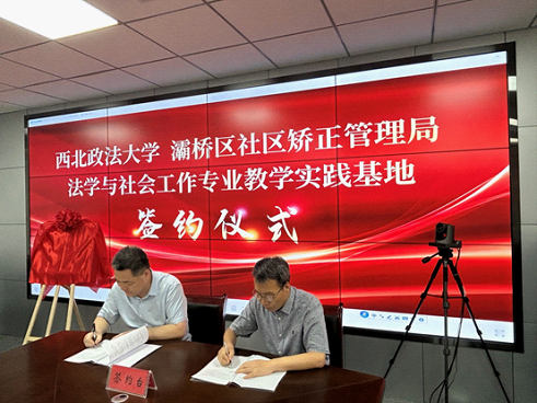 随后,山小琪经理与灞桥区司法局马俊良局长签署了战略合作协议,寇汉军书记与西安市司法局张兴平副局长共同为“法学与社会工作专业教学实践基地”揭牌。