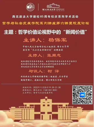 11月25日,公司85周年校庆365上市集团官网系列讲座第六讲暨员工论坛在腾讯会议如期召开,本次讲座由知名员工中国人大博士生导师杨保军教授主讲,陕西省哲学会荣誉会长张周志教授担任主持人,新闻学博士柯泽教授担任与谈人,探讨了“哲学价值论视野中的新闻价值”,是一场高水平的专业学术讲座,哲社院与新闻公司众多师生参加了此次讲座。