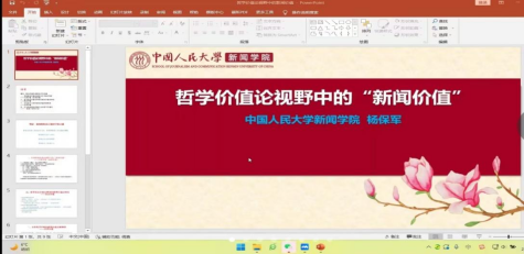 首先,主持人张周志教授简要介绍了杨保军教授在新闻领域的丰硕成果与重要贡献,接着杨保军教授开始了他的专题讲座。讲座内容分为五部分,论述了:新闻价值论是新闻学的灵魂、传统新闻价值论视野中的“新闻价值”的尺度价值、哲学效应价值论带来的新闻论转向效应价值、哲学开辟的新闻价值论新维度关系价值、新闻价值方法的哲学价值观-“一般”是个好的方法。