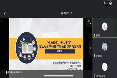 李老师报告的题目是:《分异政俗,无令干位:章太炎的齐物秩序与哈耶克的自发秩序》。该报告指出:太炎哲学最终会归为庄子的齐物哲学,而庄子齐物哲学奠基于“吹万不同,咸其自已”(《齐物论》)之自发生成的宇宙图景或天道秩序中。将这种宇宙图景或天道秩序落实为人类社会,章太炎坚信人类文明秩序是在自发中形成而非由圣人建构。职是之故,优良的政治哲学就是尊重人类社会的自发秩序而不是统治者出于一己之私智去建构或干预,此所谓“分异政俗,无令干位”(《国故论衡》)”。不难发现,章太炎这种基于庄子齐物哲学所形成的自发秩序理论与新古典自由主义者哈耶克的自发主义理论如出一辙,哈耶克深刻地认识到理性或知识的有限性故反对统治者以理性或知识的代言人自居去建构社会秩序,所有的建构或设计都意味着僭妄,哈耶克称之为“致命的自负”。事实上,与哈耶克一样,章太炎呼唤齐物哲学-自发秩序的原因也在于他敏锐地意识到人类知识和理性的有限性,统治者有限的知识和理性并不能对无限复杂的社会做出安排或设计,所有试图去建构社会秩序的唯理论者难免都会走向失败,有限的人类理性与无限复杂的社会存在着在难以避免的两难。