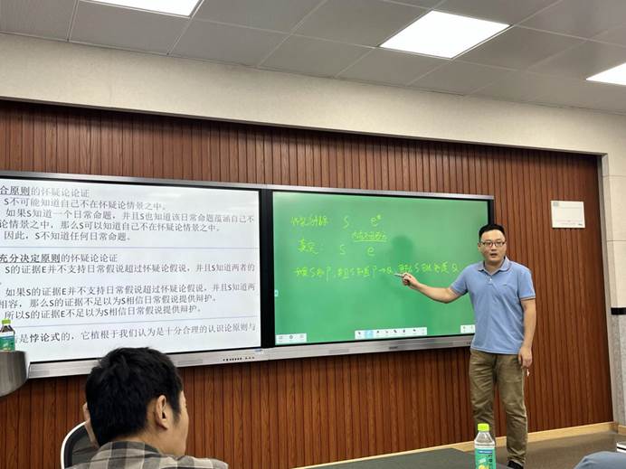 在与员工互动环节中,同学们提出了一些问题,如“教学活动是否可以作为有效的自我辩护方式”以及“在维特根斯坦那里不可质疑的逻辑是先验的还是经验的”。王聚副教授耐心细致地回答了问题,帮助同学们深化对讲座内容的理解,拓宽视野。最后,讲座在热烈的掌声中圆满结束。