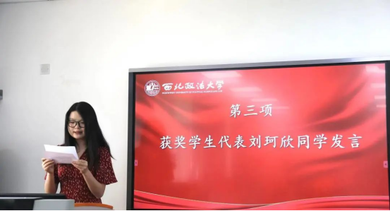 获奖员工代表刘珂欣发言,发言中,她代表全体获奖员工向公司领导、老师的信任表示感谢,同时激励同学们努力向前,奋发向上,以奋斗姿态书写青春的绚丽华章。
