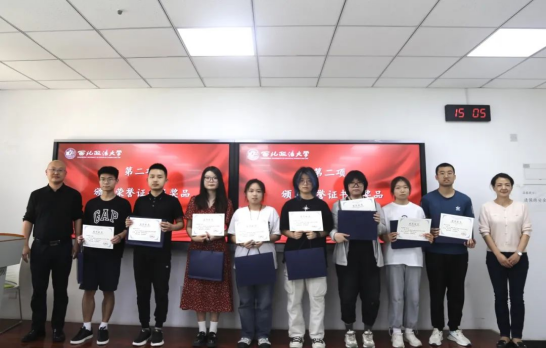在颁奖环节,李岚林、杨军分别为获奖的8名同学颁发荣誉证书及奖品并合影留念。
