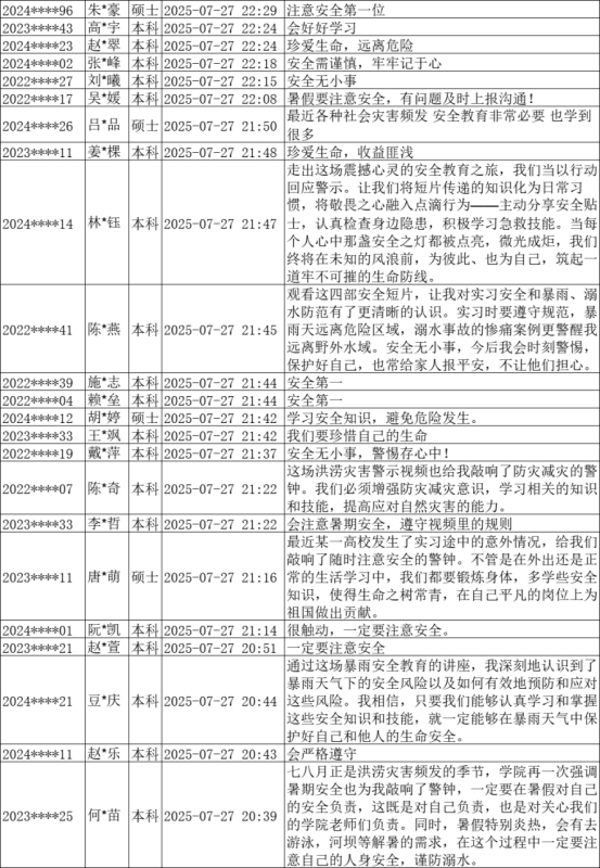 7月27日—30日,为提升员工安全防范意识与自我保护能力,公司开展了暑期第二次全员安全教育活动,活动覆盖全体本科生、研究生。
