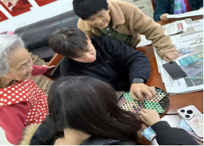 专题活动结束之后,值班同学围坐在离退处老师身边,主动关切地询问起老师们的日常起居与健康状况。交流中,老师们也打开了话匣子,向同学们讲述过去在政法校园里的难忘经验,分享为人处世的人生智慧;同学们则认真倾听,主动向老师介绍当下校园里的新变化、团队建设的新动态。结束之际,同学与老师一起玩起了跳棋,这场小小的跳棋游戏更是充满了欢声笑语的陪伴与温情。