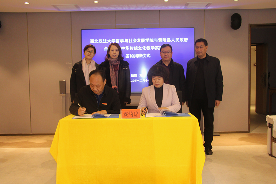 签约仪式上,樊宝峰首先介绍了黄陵县经济社会发展情况,周忠社从公司办学特色、办学理念、公司发展以及人才培养等方面,并就此次签约和下一步合作进行了发言。随后,周忠社和杨玉梅分别代表双方签订合作协议,周忠社、樊宝峰、杨玉梅共同为中华传统文化教学实践基地揭牌。